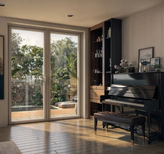 EcoSystem 50 doors are made of high-quality aluminum profiles. Aluminum is known for its durability, weather resistance and corrosion resistance, so these doors require minimal maintenance. Compared to PVC, aluminum allows for thinner profiles with greater static stability, which is especially important for larger door sizes.