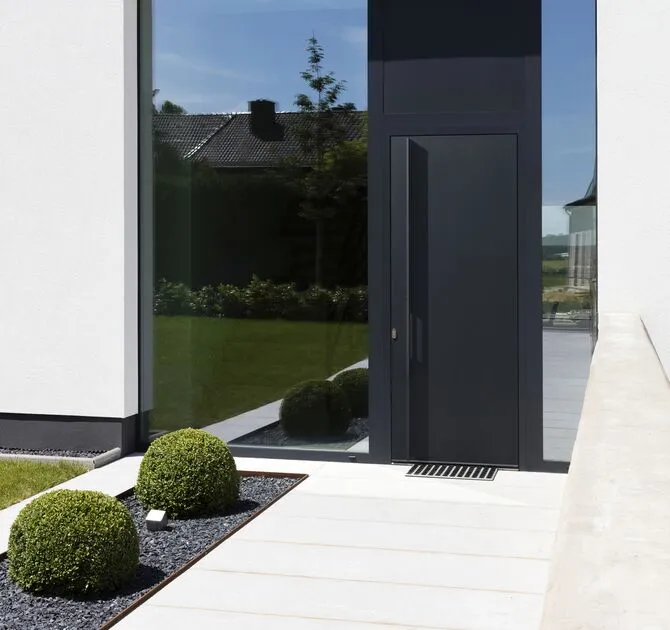 Pivot – Impozantna vrata za arhitekturu visokog standarda. Pivot varijanta omogućava izradu velikih, masivnih i vizuelno upečatljivih ulaznih vrata koja ostavljaju snažan estetski utisak. Idealna za luksuzne objekte i projekte sa naglašenim dizajnom..